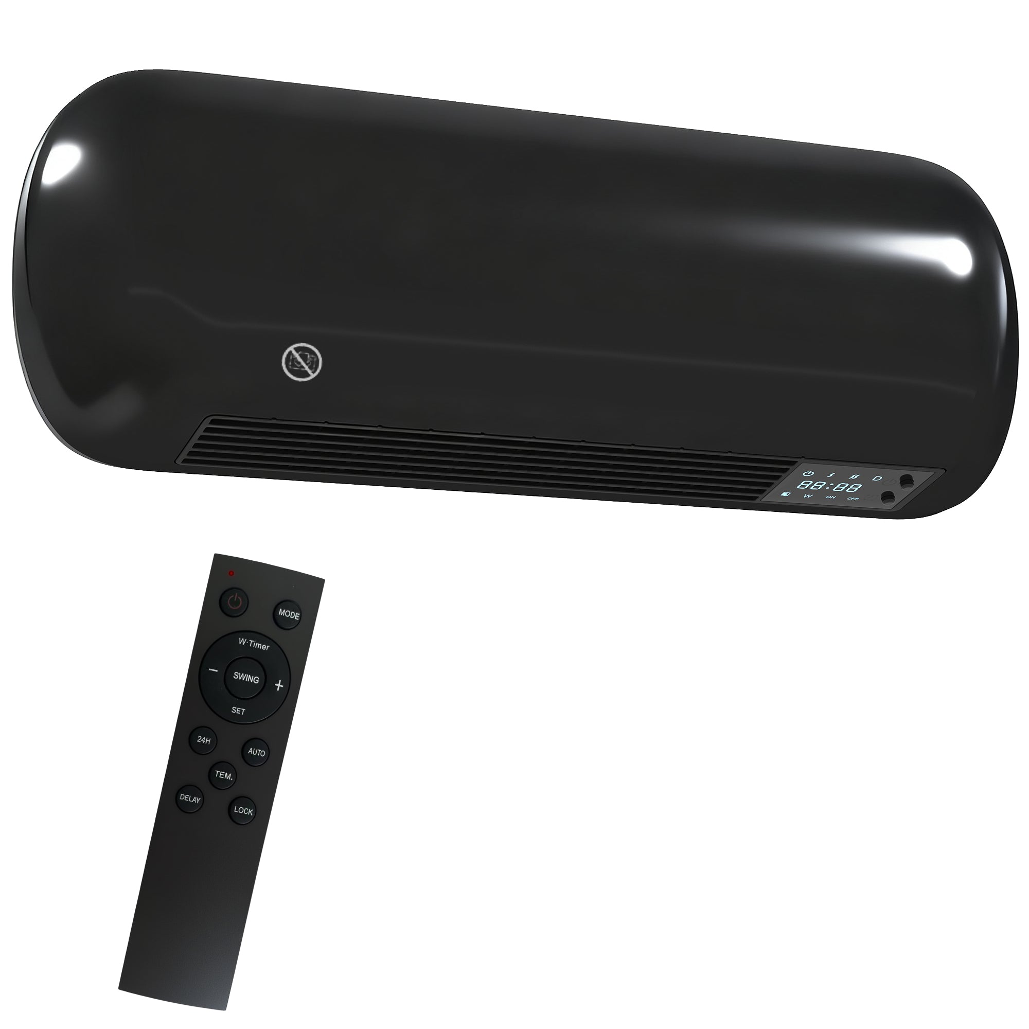 Fynco - 2000W Ceramic Electric Heater with Fan, Adjustable Thermostat, Wall Mounted - Black